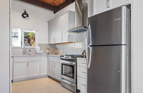Sit back on the deck and enjoy the beautiful views of Moonstone Beach. Only a short walk to the sand for morning meditation, or a sunset stroll. This is a great spot for those who would rather walk than drive on their vacation, conveniently located between Cambria's West Village and Moonstone Beach. Come into town for some local art, dining and shopping. Bring your dog along, Cambria is very dog-friendly, and yours will love sunning on the wraparound deck, the single level spaciousness, and other creature comforts. There is WiFi, DVD/CD player. Ocean Views from almost every room, new carpet, a new Crate and Barrel high-top table with 4 chairs, a Gas BBQ for the perfect BBQ, private and quiet. Appropriately named, this is a cool house, with a really cool view!! Single level, short walk to Moonstone Beach or West Village, spectacular ocean views, deck, washer / dryer, 55 inch TV over the fireplace in livingroom, Tv in the master bedroom, VCR, WiFi Internet, gas BBQ, wood burning fireplace and garage. TOT#0000564
