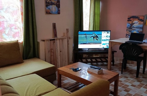 and shower, 2 bedrooms that can accommodate 2 each with a shared toilet and shower. In the living room and lobby we can have 3 people sleep there, there's a well equipped kitchen not to mention about the bushy garden outside the pace is habitable, welcoming and comfortable it's located in the southern part of Nairobi in the outskirts of Ongata Rongai which borders the Nairobi National Park andThe Sheldrick Elephant Orphanage. The Giraffe Center, Karen blixen Museum and the Crocodile Farm are not very far, to commute within the locality one can take walks or use motorcycle or Uber for that matter we have restaurants supermarkets, chemists and butcheries at the shopping center where there's also a market in case one would like to purchase fruits and vegetables. we can arrange for organized tours to various other places within the country at negotiable rates