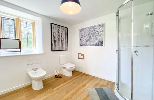 The kitchen is large, with original flagstone floor, seats 8 easily with room for more tables, and has a 4 door Aga, and masses of cupboard space, this leads to a cosy kids playroom, stacked with toys, puzzles and DVDs. Hall is flagstoned and has a loo with washing and drying machines. The hall leads to the dining room. This is flagstoned with a wood burner, large fireplace, baby grand piano and dining table seats 12-14 people with room for further table. This follows onto another hall, entrance to the garden and patio area, another loo and the sitting room, which has Tv/Sky/Wifi large fireplace, woodburner and original features. There are 2 sets of stairs in the house to the first floor where there is a kids bathroom (smaller) with shower, bath and loo, a very big bathroom (bath, separate shower, and loo) 3 double rooms, one single room and one room with twin beds. Up some steep wooden steps is the attic area, where a large playroom with double futon leads into a pretty double bedroom. Wantsley is a comfortable lived-in family farmhouse, not a chic hotel or rent-only house. We live here most of the year, except for August, Christmas and occasionally Easter. We often have Ducks (wild and flighty) and mostly always have Chickens on the property, the presence of which is as much controlled by us as by how hungry the foxes are. The chickens a completely free-range so might pop up anywhere. Depending on mood and season they will provide eggs in exchange for remembering to feed them :).