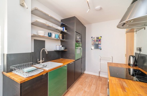 Light and airy, the comfortably furnished living room has a cosy sofa that converts into a double sofa bed. Sit back and relax after a long day’s sightseeing and marvel at the stunning views over Arthur’s Seat. A Smart TV with Netflix and Wi-Fi provide your entertainment needs.