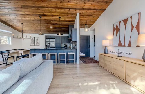 This modern style home boasts 3 bedrooms, 2 bathrooms, and almost 2,000 square feet of living space for up to 6 guests to enjoy comfortably. The mountain views can be seen from the expansive windows whether you’re sunken into the cozy living room couch, cooking for friends and family in the chef's kitchen, or playing board games in the game room. Coffee lovers will enjoy the multiple options for fresh coffee making in the morning. Outdoor living on the back deck includes a stainless steel grill, outdoor sofas, and outdoor dining area.