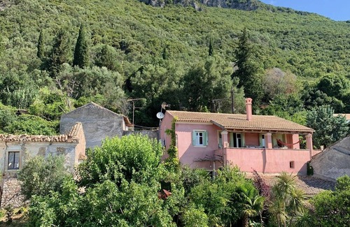 This traditional house, built of massive Corfiot stones dates back to the 19th century and was designed in the Venetian style. The complete reconstruction was done using the historic building materials and with great respect to the orignal. Today, the villa's intelligent layout will give guests a blend of privacy and conviviality in the different areas of the villa and garden. Three very comfortable bedrooms and two bathrooms on the cool lower floor and an openspace living area on the upper floor offer generous space for up to 6 people. You will be surprised by the feeling of belonging that the tasteful decoration and comfortable amenities of this house will instill -maybe though it just has a good spirit of its own. Feel like a true Corfiot, away from the hustle and bustle of the touristy areas of the island this place will be a haven of peace at the end of each day lazing on beaches or discovering the island. Or spend your day on the generous terrace, just enjoying the views and the change of light. You will never tire of the scenery of the terracotta tiled roofs of the village leading into the lush Doukades valley with olive groves and cypress trees and to the far distance of the mountains lining the Western coast. The two romantic gardens offer an abundance of mediterranean plants dispensing their delicious aromas. We grow fresh herbs for infusions and elaborate dishes to be prepared in the well-equiped and chef-proof kitchen.