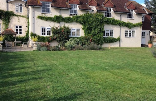 This stylish fully self-contained two bedroomed suite, situated on the first floor of Barton Manor, also has two bathrooms and a large hallway. It’s sitting room/lounge is equipped with a two extremely comfortable electric sofas, a smart TV & wifi. The fully fitted kitchen/diner is complete with washing machine, dishwasher, microwave, coffee machine & all associated utensils. The suite provides a parking space in the undercover oak carport within the grounds of Barton Manor and there is also an overnight slow charge facility for electric cars.