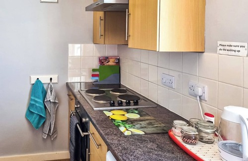 Bathroom 1: Bath, Heated Towel Rail, Toilet. Electric central heating, electricity, bed linen, towels and Wi-Fi included. Travel cot available on request. Welcome pack. Private parking for 1 car. No smoking. . Hillrise is located on the first floor of a Victorian terrace, in a quiet residential road. There is a flight of stairs to the apartment but no lift. The apartment has been recently decorated and refurbished in 2023 and has brand new bed and bedding. There is a living room, fully equipped kitchen, double bedroom and a bathroom with free toiletries.
