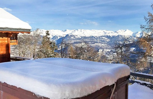 A luxurious 12 person chalet with superb view is located in Vex. A luxurious 12 person chalet with superb view provides accommodation, featuring Child Friendly, Pet Friendly, Balcony/Terrace, among other amenities. This Ski Chalet features Child Friendly, Pet Friendly, Balcony/Terrace, to make your stay a comfortable one.