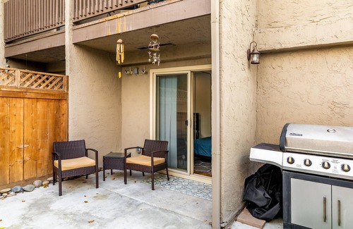 Beautiful 1-bed 1-bath condo West of the 5. Close to the heart of Oceanside, you will quickly fall in love with the area and not want to leave! Only a 10 minute drive to Camp Pendleton or Carlsbad, and just a quick walk to the beach through neighborhoods. Plethora of activities in the area like riding, running, surfing, great dining, or just beach fun. Comfortable living area includes a TV, speaker system, bar seating, and sectional sofa that converts to queen bed for additional guests. Recently renovated kitchen is equipped to suit all your culinary needs. Split heat/air conditioner, ceiling fans, recessed LED lighting and high-speed WiFi included. Private outdoor patio area and grill in the backyard. Detached one-car garage is available for parking. Make sure to bring your beach things; everything else is ready for you!