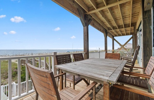 Starring the Ocean View: Whether one simply watches the waves on the ocean directly in front of the house, or looks down the length of Holden Beach, past Ocean Isle and on to Sunset Beach, the view is sensational.