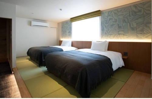 The 45-square-meter guest room has impressive spacious tatami mats, two 160-cm wide queen beds and one 90-meter wide sofa bed.