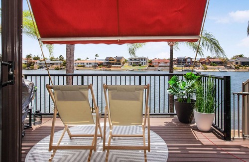 Make the most of your holiday with this charming waterfront unit in the quiet Gold Coast suburb of Mermaid Waters. From here you’ll be able to kayak, fish and surf. Or perhaps shopping is more your style: if so, Pacific Fair Shopping Centre and its 400 stores are just 800m away. Inside you’ll love the high ceiling with exposed beams, the fully-equipped kitchen and the spacious, comfortable living area. The garage makes parking easy, and buses leave from around the corner.