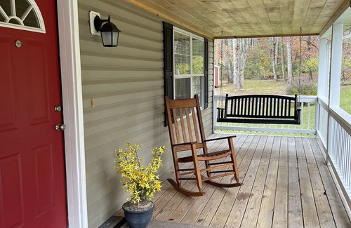 With over 1-1/2 acres, you’ll have lots of options at Two Creeks. Relax at the creek and fire pit, rock on the covered porch, or sun on the open deck. Enjoy the views, and the sounds, of mountain nature. You can see — and hear — the creek from the porch and deck.