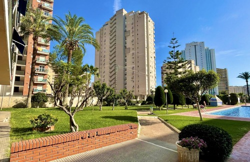 Cozy studio with terrace in the Hannibal building, Cala de Finestrat, Benidorm. 6th floor, 25 m², accommodates 2 people, with a double bed. Open-plan kitchen equipped with fridge, freezer, washing machine, microwave, kettle, juicer, coffee maker, toaster, crockery and kitchen utensils. Bathroom with shower. Air conditioning and central heating for year-round comfort. Community parking space in the same building included in the price. Pets up to 20 kg are welcome 🐶. Complex with garden, children’s area and large community + kids pool 🏊♀️. Just 350 m from Cala de Finestrat beach, 500 m from the supermarket and 100 m from the bus stop 🚌. Perfect for a seaside getaway!