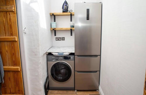 Utility area: washer/dryer, ceiling clothes dryer/airer, fridge freezer