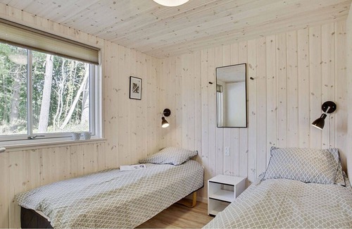 This spacious pool holiday home is located in the midst of the diverse landscape that impressively characterizes the north of Zealand, making it the perfect starting point for excursions to the varied attractions in the area and to the wonderful Baltic Sea beach. In addition, the large holidaymakers can make themselves comfortable on the two partially covered terraces while barbecuing and sunbathing, while the younger guests romp about the lawn and use the sandpit and swing.