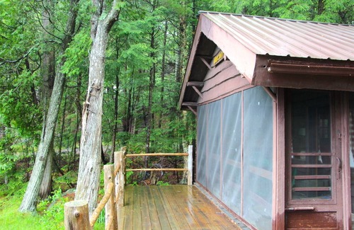 This cabin is an Adirondack, pet friendly cabin rental and is 3 miles from the Village of Saranac Lake. The waterfront cabin with screen porch and outside deck, has a nice sunset view and fronts the end of Kiwassa Lake/beginning of Kiwassa Outlet, which is part of the Saranac Lake Chain.