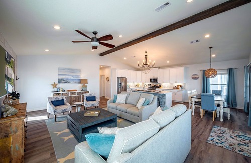 Looking for a modern exquisitely decorated beach house where you can catch fish right off your back porch and enjoy sunrises/sunsets from multiple private decks? You've found it! Welcome to Agua Vista Waterfront Villa. Our modern home features 3 bedrooms & 2 bathrooms upstairs with an open concept expansive living/kitchen space fully stocked for your family or group. The primary bedroom is a true retreat with King bed, smart TV, designer oversized shower, double vanity and gorgeous decor. 2nd bedroom features a super comfy King bed, ample closet space, smart tv and fan/light combo. 3rd bedroom is as cute as a button with 2 full sized beds and a friendly whale theme that will make your kids smile. Bonus play room downstairs and has a Queen sleeper sofa, Xbox ONE system with games, SmartTV, fridge, microwave and half bath. Outdoor shower just outside the bonus room with privacy wall and latch. Covered Area underneath features a high end dining set with seating for 8. Also a 7 person Thermo-Spa Hot Tub with amazing view of the water. Relax and Unwind at the end of the day or start your morning off right enjoying the sunrise from the hot tub! The home has TREX composite decking throughout including downstairs for the "fishing" deck. We have an automatic fishing light that comes on at sunset to attract the trout and other fish. We have 2 single kayaks/paddles & 1 tandem kayak/paddles & life jackets for your use at your own risk. Upstairs we have over 1200sqft of decking, dining table/chairs, 4 composite adirondacks/side tables and 4 sun-loungers. Home has a rolling gate for extra security and plenty of parking in the driveway for 3 cars. Our home is less than a 2 minute drive right across to the BEACH where there is plenty of parking. Just drive down the beach to an open spot and have all your gear right there with you. No hauling gear anywhere. Community Pool, Boat Ramp and Playground just down the street. Pool Pass is $5/person. We are experienced property managers/owners and have racked up thousands of 5 STAR reviews at the properties we own. Check out our website RNRVACAYS.COM . We will do our very best to ensure you have an AMAZING stay! Thank you for trusting us with your vacation plans! Rental is a licensed STR # STR22-00256