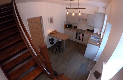 Recently installed new kitchen with Microwave, Ceramic hob, built in conventional oven, fridge freezer, toaster, electric kettle, dishwasher, breakfast bar with log effect over head-lighting.