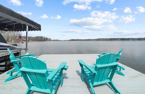 Come and enjoy this stylish, luxury, and peaceful lake getaway. Placed in the perfect quiet, peaceful part of Lake Oconee. Gorgeous lake views all around, especially from the hot tub! There is one interior fireplace with two outdoor fireplaces and a fire pit. Kayaks and paddle boards will be available by our private dock. This space is very family friendly with two living spaces (upstairs and downstairs), pool table and fusball, 3 bedrooms, modern kitchen, and so much more!