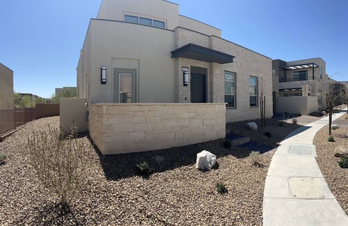 Modern Newly built and Furnished Resort Townhome in gated community. Amenities to include Community Swimming Pool and Hot Tub, Gym, Bocci Ball, Etc. 18 minutes to the strip, Close to golf, hiking trails and fantastic dining and shopping. Each bedroom has private bathroom. Fantastic comfortable beds (one adjustable), High end TV's, Huge open kitchen. Strip and Redrock views. Surrounded by Multimillion dollar neighborhoods. One renter must be 55+ and nobody under 19 years of age. See more info at