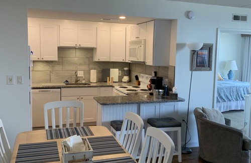 The unit includes three flat screen TVs with cable, Wi-fi, keyless entry (password at check-in) a small washer/dryer, a full kitchen (renovated 2021), a separate dining area, and plenty of board games, videos, DVDs, and books. The large family room faces the ocean and includes floor to ceiling windows with access to the balcony... a perfect place to enjoy your afternoon cocktails before heading out for the evening. The L-shaped couch (2020) in the living room converts to a queen size sofa bed. Large family pool and toddler pool on oceanfront deck. A recently renovated 22nd floor (2021) includes large meeting rooms, exercise room with diverse selection of equipment, locker rooms, saunas, game room and pool.