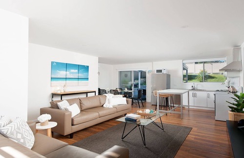 Offering plenty of space to welcome up to 7 guests, this stylish downstairs apartment is fresh and modern with a relaxed coastal feel flowing throughout. This property features an open plan kitchen, dining and living area with sliding doors that welcome fresh air and sunlight on fine days. Complete with stylish furnishings inside and out, it’s no wonder this property is at the top of everyone’s bucket list!