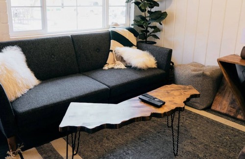 The Alpenglow Suite is a private, motel-style suite equipped with two bedrooms (1 queen, 2 twin beds), living room (with a sofa bed that can sleep 2 more guests), 3/4 bath consists of shower, toilet & sink, compact (yet fully equipped) kitchenette, and dining space. Enjoy a communal courtyard perfect for exchanging trail stories over a bonfire and BBQ meal (gas or charcoal, dealer’s choice).