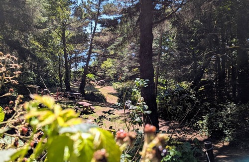 You’ll be just steps from gorgeous Beverly Beach when you stay at this charming, dog-friendly one-bedroom Otter Rock cottage. Part of the idyllic Alpine Chalets community, this cozy A-frame offers ocean views, WiFi, a shared outdoor firepit, and direct beach access.