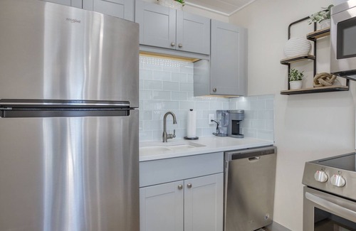 The villa can accommodate up to four guests and features a queen-size bed in the bedroom and 2 hallway bunkbeds with reading lights and charging ports. The villa also includes a eat-in, kitchen, bath, and laundry alcove. This complex is directly on the Beach, and has it's open private gate with washdown area after a great time on the beach!