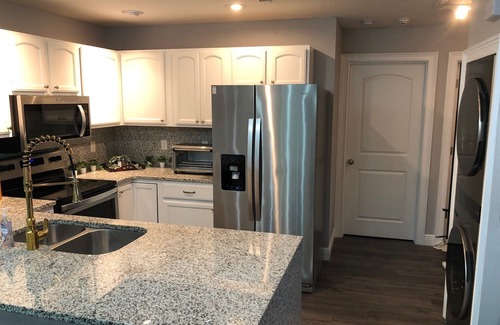 Luxury, Two bedroom, one bathroom apartment located behind our home in the diverse, friendly, welcoming and amazing Thornton Park neighborhood. Full kitchen with range, microwave, refrigerator, dishwasher, Keurig machine, coffee maker, and extremely well equipped with dishes, pots, pans, etc. Coffee, coffee pods, tea & sugar, sweetners, & creamers provided. One bedroom has twin beds and the other has a king sized bed. Both bedrooms have televisions as well as Smart TV in Living Room with cable. Free internet. Full-size washer & dryer in the unit. Small dog friendly with additional deposit. Great for long-term stays. Walking distance to Thornton Park shops and restaurants and beautiful Lake Eola and Downtown Orlando city center. Can also walk to Doctor Philips Performing Arts Center and Kia Center, and soccer stadium. Although there is also free bus service (LYMMO) with stop a few blocks away. Also located very close to both AdventHealth & Orlando Health flagship hospitals. Close to all major highways with easy access to all area theme parks and attractions. Walk to Executive Airport. ALL ARE WELCOME & WE HOPE YOU WILL CONSIDER COMING FOR A VISIT!