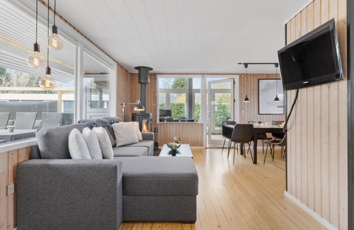 Enjoy a relaxing break from everyday life with your family and move into this pretty vacation home, which will contribute to a successful vacation. Two living room areas invite you to spend quiet or entertaining evenings with children and adults, whether watching a movie or series or chatting with a view of the garden. Cook together in the well-equipped kitchen or fire up the barbecue on the large wooden terrace and enjoy your meals in the open air. Get together when the children are asleep for a sauna session or enjoy family time together playing soccer in the garden.