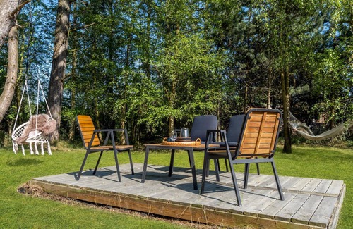 The house welcomes you on an attractive property surrounded by trees and near a good swimming beach, making it ideal for a relaxing getaway. In the cozy rooms you can relax with the whole family in a rustic ambience. Cook together here in peace and enjoy meals with a beautiful view of the outdoors, which allows you to experience the closeness to nature in the best possible way. After an active day, make yourself comfortable in the living area, put your feet up, stoke a fire in the decorative fireplace and chat comfortably for a long time.