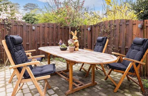 Cosy garden furniture on the sheltered terrace invites you to spend relaxing hours in the open air. Fire up the barbecue and celebrate your time together with an atmospheric feast.
