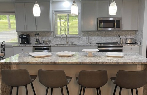 A new remodel Lake-house With a beautiful kitchen and a standing granite in the whole house in a very quiet neighborhood you jump off right to the property in the water enjoying swimming kayaking and bringing up your own boat or renting one. Lay down on the sun or stay on the shed of beautiful huge trees large backyard and the fire pit bring everyone together lots of chairs and The outside gas grill Help you to prepare fast your dinner The house it is located very close to all shopping area to Oakland and downtown and many more Beside the three bedrooms in the living room we have a queen sofa bed Everything it’s new in the house and the kitchen it’s stuck with everything you need