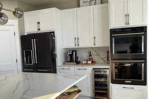 - [ ] Don’t put hot pans on top of the quartz countertops or wine use coasters, or wood boards