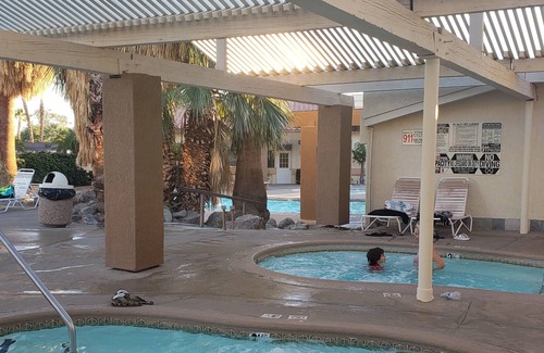 Best-rates for the Desert Hot Springs house starts from $119 per night with includes Balcony/Terrace, Child Friendly, Internet, Kitchen, Laundry, Air Conditioner, Pool, Bedding/Linens, Hot Tub with all other facilities. RBO matches every traveler with their perfect accommodation, whether you are traveling with a group, friends, family, or pets.