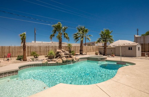 If you're looking for a great place to kick up your feet after a long day on the lake, look no further! Resort-like backyard & AMAZING pool. Sparkling clean & beautifully furnished down to the last detail! Complimented with a 35 foot log pole patio providing plenty of shade on HOT summer days! The backyard is fully fenced and PRIVATE (no one can look into the yard) like staying at your own private resort in the desert :)