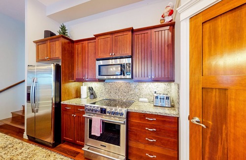 This majestic townhouse features a bright open floor plan, which seamlessly combines all living spaces into one. Curl up by the warmth of the gas fireplace and read a favorite novel or watch a fun show or movie on the large TV. The living room is the ultimate gathering spot. When mealtime comes, put on the chef's apron and treat the crew to a delicious homemade meal prepared in the stylish kitchen, complete with stainless steel appliances, then break out the board games!