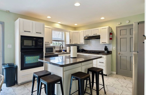 The house has three relaxing full bathrooms and an additional half bath accessible from the living area. All baths are stocked with fresh towels and essentials, so you don't have to worry about bringing your own.