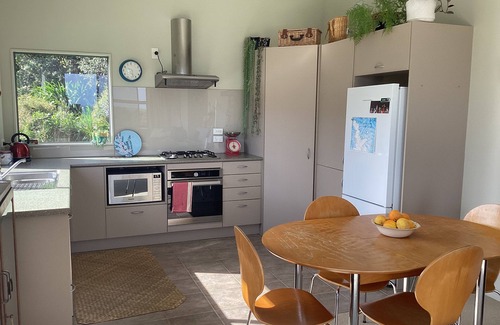 Relax and unwind in this calm, stylish space with stunning views of the Hauraki Gulf islands to the west and the most beautiful tranquil stream to the north and the bush towards the east. This place is completely surrounded by the natural beauty that the Coromandel has to offer.