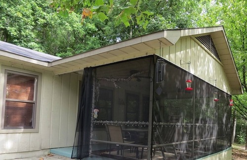 This home sleeps 6 and is right on the water. Screened in porch, wet bar. 2 full baths and lots of upgrades including 2 55 inch flat screen televisions and split bedroom floor plan. 2 king sized pillow top mattresses and a queen sleeper sofa. Bring your clothes and food and everything else is furnished!! The perfect get away with the best view and no slope to the lake!! Also another sofa and a queen air mattress. 1200 square feet and screened in porch and fully stocked kitchen. All linens provided!!