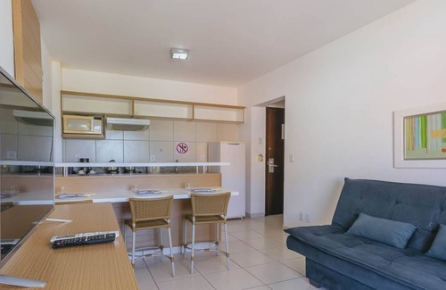 O espaço é integrado e funcional. Conta com um quarto aconchegante, equipado com cama de casal, cama de solteiro e colchão de chão. Há sofá-cama na sala de estar, TV e internet sem fios. O apartamento oferece ar-condicionado e cozinha completa com mesa de jantar, fogão, micro-ondas, torradeira, copos de vinho, utensílios de cozinha, pratos e talheres.