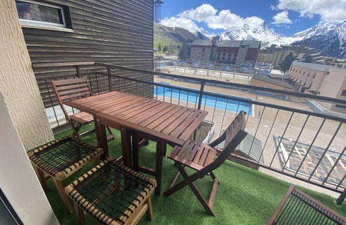 It is made up of a separate cabin area and a large south-facing balcony with a view of the resort's swimming pool and skating rink and the Muzelle. You will also benefit from secure parking with a barrier in the residence's private car park.