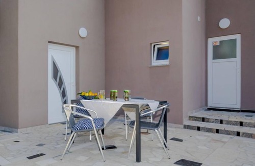 Ližnjan 2 km from Medulin: Apartment house "B&B". 300 m from the centre of Ližnjan, in a quiet, sunny position, 1 km from the sea, 1 km from the beach. For shared use: property 800 m2, small garden with lawn and plants. Terrace (10 m2), garden furniture, barbecue (swing). In the house: internet access, trampoline, washing machine (for shared use, extra). Parking at the house on the premises. Shop, restaurant 100 m, bus stop 400 m, sandy beach 1.5 km pebble beach 1 km, rocky beach 1 km. Golf course (18 hole) 30 km, tennis 100 m, riding stable 1.5 km, walking paths from the house 100 m, cycle lane 150 m.
