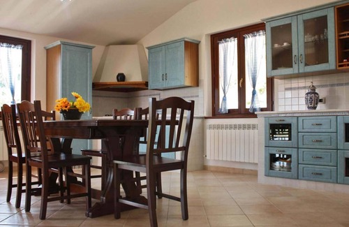 Apartment Belvedere is an apartment with pool in Le Marche and belongs to Casale La Veduta, a farmhouse composed of two apartments. Set in a dominant position with an enchanting view over the hill landscape of Le Marche region, this location is the perfect choice for those looking to spend pleasant holidays. From the villa, which is located at a short distance to Acqualagna, the capital of Truffle, one can easily reach the Adriatic coast and spend unforgettable days at the beach. The property is completely fenced-in and surrounded by a private garden with panoramic swimming pool and equipped gazebo. A roofed terrace with tables and chairs is available for the guests.