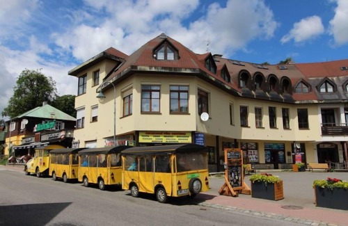 Cosy apartment block, 3 storeys. In the centre of Harrachov, in a busy position, 300 m from the skiing area. In the house: central heating system. Parking at the house. Supermarket, restaurant, café 50 m, bicycle rental 300 m, bus stop "Harrachov, centrum" 100 m, railway station "Harrachov" 3 km, outdoor swimming pool 1 km. Golf course (9 hole) 4 km, tennis 1 km, ski lift, chair lift, slopes 300 m, ski rental 10 m, ski school, cross country ski track, children's playground 200 m. Nearby attractions: Bobová dráha, Muzeum skla 1 km, Skokanské můstky Harrachov 1 km, Mumlavský vodopád 1.5 km, Vosecká bouda, Dvořačky 9 km, Huťský vodopád 9 km, Vodopád Kamienczyka, Szklarki (PL) 12 km. Well-known ski regions can easily be reached: Čertova hora 300 m, Zákoutí 1 km, Ryžoviště 2 km, Kořenov 7 km, Rokytnice nad Jizerou 15 km. Hiking paths: Vodní nádrž Souš,Dinopark(Pl),Termy (Pl) 15 km, Park miniatury Kowary44km,Karpacz (Pl) 39 km, Giganteria Piechowice 23 km. The keys‘ handover takes place by the agency Interhome Harrachov.