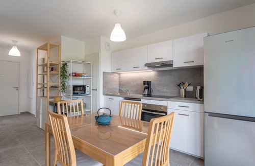 Residence "Canopy", 4 storeys, built in 2023, surrounded by trees. In the district of hyères, in a sunny position, excellent location: right in the centre but still quiet, 5 km from the sea, 5 km from the beach, in the countryside. For shared use: well-kept garden (fenced) with plants and flowers. In the complex: lift. Shop 500 m, grocery 1 km, supermarket 500 m, shopping centre 2.4 km, restaurant 1 km, bar 1 km, bakery 1 km, café 1 km, pedestrian zone 1 km, 14 minute walk to the centre, bus stop "Branly" 140 m, sandy beach "L'Ayguade" 5 km, park "Olbius Riquier", outdoor swimming pool 230 m. Sports harbour 4.7 km, marina 4.7 km, golf course (18 hole) 1.8 km, surf school 5.5 km. Nearby attractions: Speedkart 3.3 km, Eco park adventure la Castille 10 km, Chateau d'hyères 2.3 km. Hiking paths: Espace nature les Salins 7.1 km, Chemin littoral par bord mer les Salins 7.3 km. Please note: the keys‘ handover takes place by the agency Interhome in Hyères le Port. Airfield 2 km from the property.