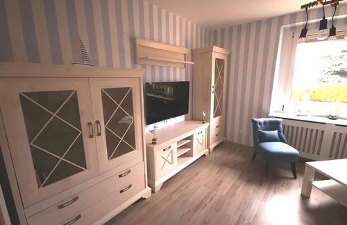 The holiday apartment Ferienwohnung Gitti Ueckermünde with step-free interior is located in Ueckermünde and is perfect for an unforgettable holiday with your loved ones. The 69 m² property consists of a living room, a fully-equipped kitchen, 1 bedroom and 1 bathroom and can therefore accommodate 4 people. Additional amenities include Wi-Fi, a TV, a washing machine as well as children's books and toys. A high chair is also available. This vacation rental includes a private outdoor terrace and a barbecue.