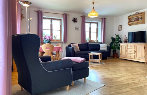 Genießen Sie Ihren Urlaub in ruhiger, sonniger Höhenlage (ca. 850 m) mit herrlichem Berglick. Das Landhaus Bognerlehen ist idealer Ausgangspunkt vieler Wandermöglichkeiten. Besuchen Sie die nahegelegenen Sehenswürdigkeiten von Berchtesgaden, Salzburg und Umgebung. In nächster Nähe finden Sie im Winter einen Skilift für Anfänger. Für unsere kleinen Gäste haben wir Kinderbetten, einen Spielplatz am Haus, Fahrräder oder im Winter Ski und Schlitten zur Verfügung. Autostellplätze sind am Haus, Brötchenservice, Haustiere auf Anfrage. Nächste Bushaltestelle: "Neuhäusl" 10 Gehminuten.