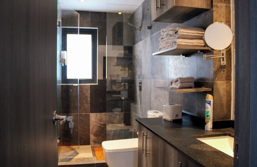 Enjoy the city like a local. The apartment was built a couple of years ago and has practically never been lived in. Everything is top tier and perfectly finished. The one bedroom apt has a king-sized bed, a fully equipped kitchen, bathroom, dining area and living room with a sofa-bed, 60inch TV, washing machine and drier. Each room is equipped with custom furniture by a Mexican design firm, top-of-the-line bedding and bathroom amenities and kitchen cookware. You'll find everything you may need to find yourself at home.
