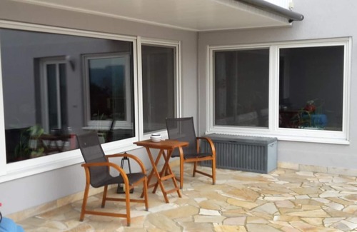 Basement apartment, about 100 square meters, in the urban district Roscheid overlooking the valley. The apartment in a quiet location has 2 sep. Double bedroom and a private entrance over the large courtyard terrace (80 sqm). This is partially covered. In addition, an awning is available. Arrive and feel good!