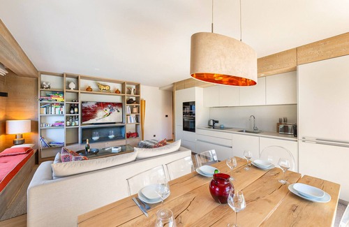 Welcome to Apartment Miette, your dream holiday retreat in the heart of Megeve in the French Alps. This bright and spacious three-bedroom apartment effortlessly accommodates four adults and three children, promising a stylish and modern escape for your mountain getaway. As you step into this haven, you'll be greeted by a light-neutral decor with rich wood accents, creating a soothing ambience.